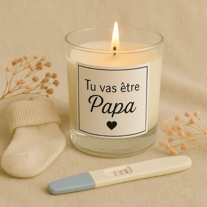 Chaque bougie personnalisée annonce de grossesse est soigneusement pensée pour transmettre un message tout en douceur. Grâce à une étiquette personnalisée, un petit mot caché ou une surprise sous le couvercle, elle devient un véritable messager d’amour. C’est l’option idéale pour celles qui veulent créer l’effet de surprise tout en offrant un objet qui restera dans le cœur et la mémoire. La personnalisation peut inclure une date, un prénom, ou une phrase pleine d’émotion.