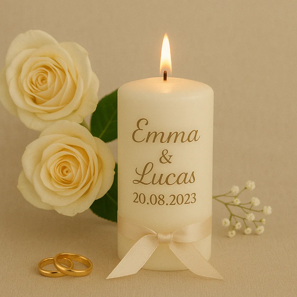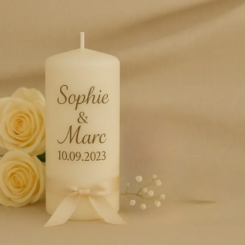 La bougie personnalisée mariage est un objet que l’on garde, que l’on allume pour fêter l’anniversaire de mariage ou simplement pour raviver les souvenirs d’un instant magique. Qu’elle soit utilisée ou simplement exposée, elle rappelle à chaque regard la beauté d’un moment suspendu. Personnalisée avec un message, un motif, ou simplement les prénoms et la date, elle devient un trésor de votre vie de couple. À la fois intime et universelle, elle parle à tous les cœurs.