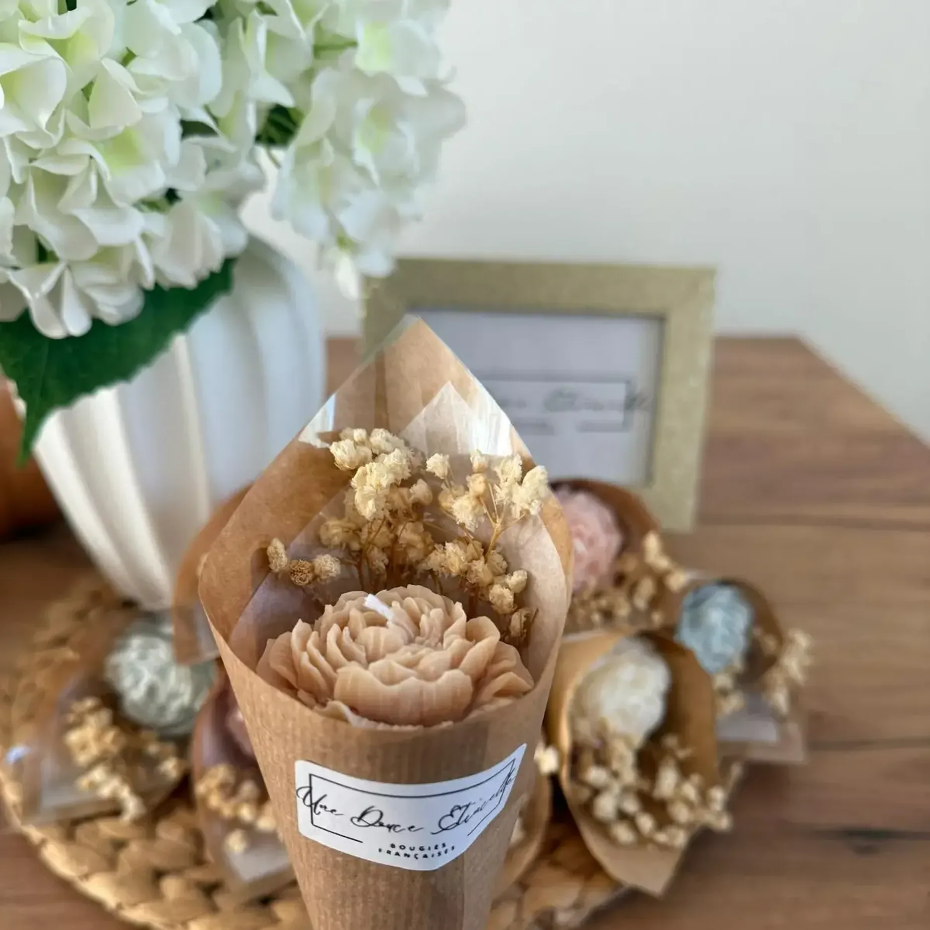 Bouquet de Bougie fleur Pivoine personnalisé avec fleurs séchées: