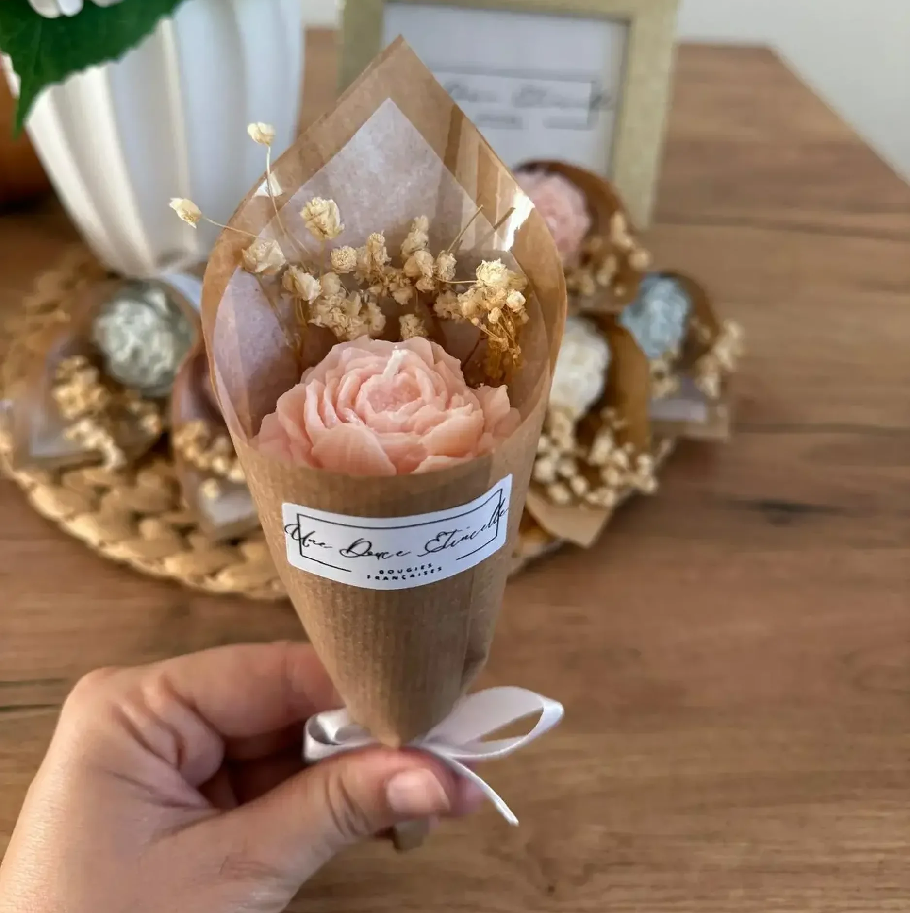 Contrairement à un bouquet traditionnel, ce mini bouquet de bougie restera intacte au fil du temps et ne fanera jamais.