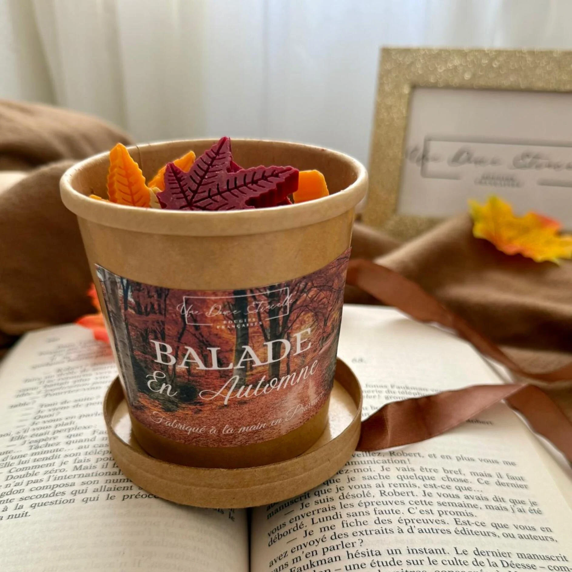 Vous pouvez également l’utiliser uniquement en décoration. Ces petites créations apporteront une touche automnale élégante à votre intérieur et créeront une atmosphère cocooning idéale pour les soirées fraîches. Grâce à se belle étiquette représentant une forêt d’automne, ce coffret de fondants parfumés trouvera facilement sa place dans votre décoration.